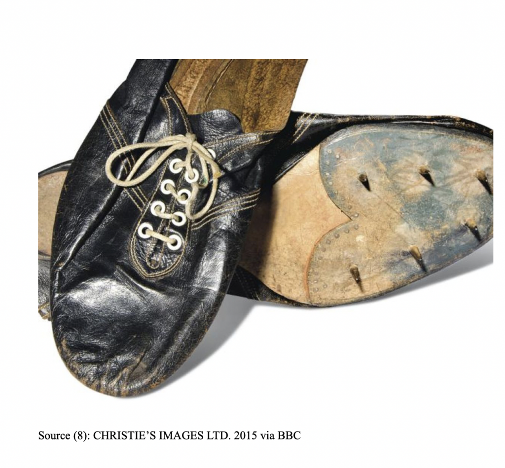 Here is the cutting-edge technology in Roger Bannister’s day: leather shoes, metal spikes, and string laces through plastic eyelets.